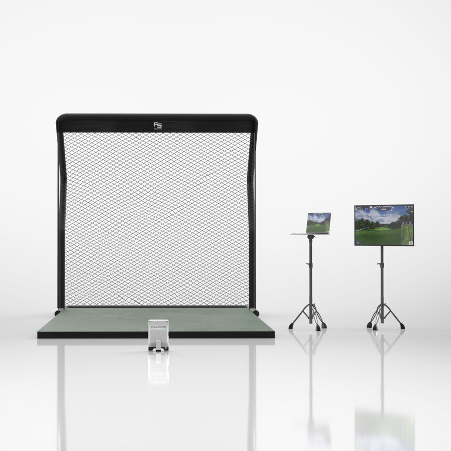 Get everything you need to be able to set up your own indoor golf studio to see your shots enter the virtual world on the screen in front of you, powered by the most innovative launch monitor on the market, the Full Swing KIT. With this package, you’ll get a durable screen enclosure with side barriers, turf landing pads and mats, and premium projector.